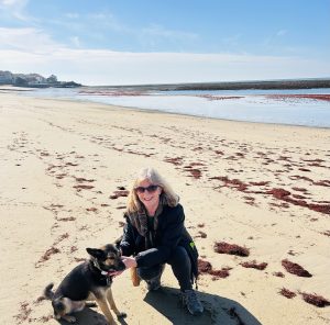 HM: This is an early spring photo of me with rescue dog Homer on the beach in France.